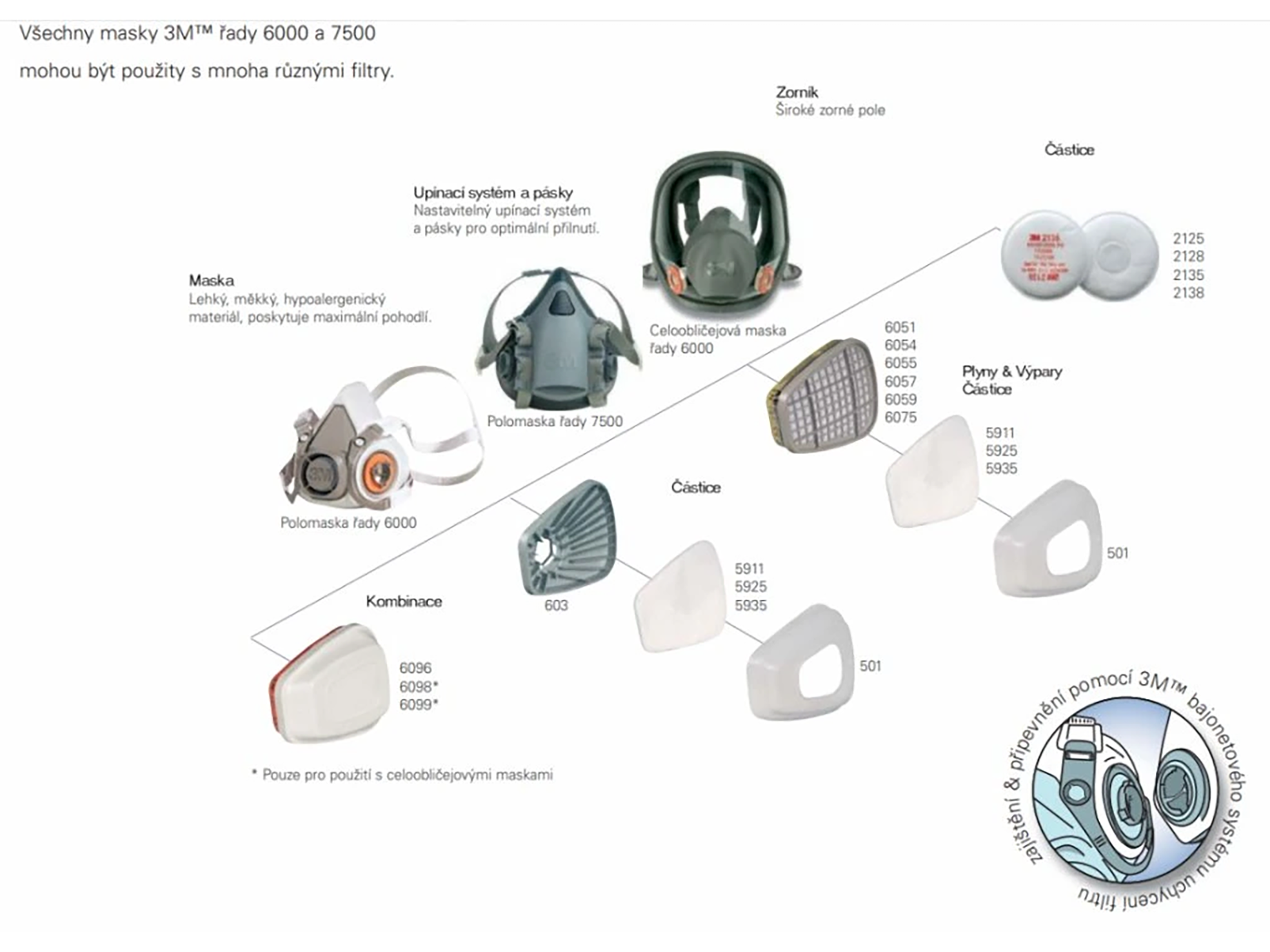 Systém upevnenia bajonetového filtra 3M pre bezpečné a spoľahlivé upevnenie filtra.