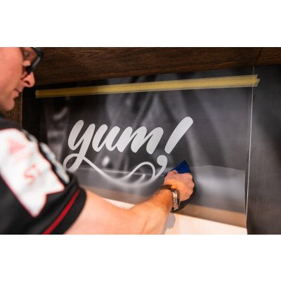 Možno použiť na tlačenú/rezanú reklamu alebo na priamu aplikáciu panelov, pultov, skriniek, stolov,...