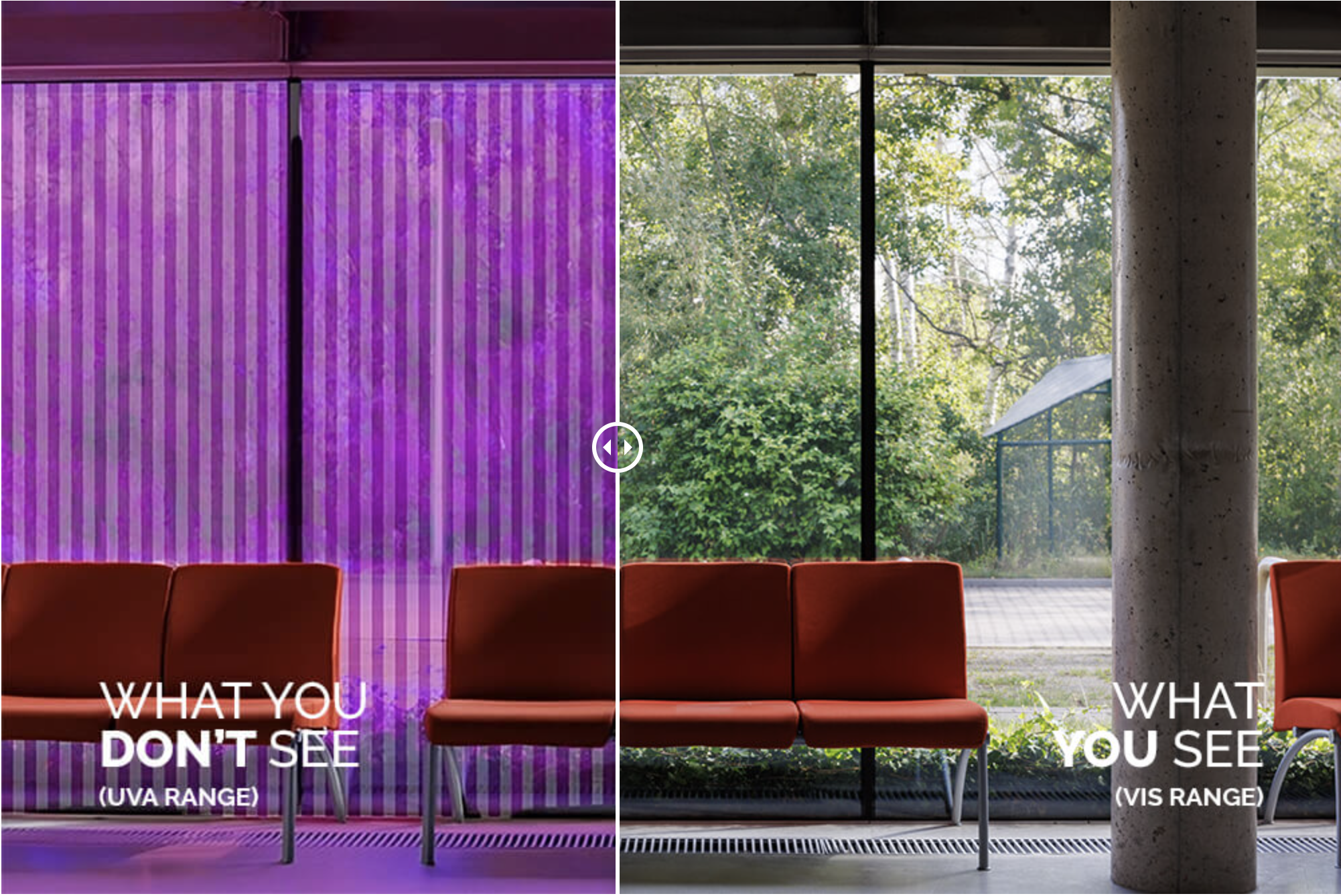 Neviditeľná okenná fólia BirdShades na ochranu pred vtákmi vám umožňuje zachovať estetickú hodnotu sklenených povrchov vašej budovy bez toho, aby to malo negatívny vplyv na biodiverzitu. Táto technológia je založená na schopnosti špecifickej pre vtáky: väčšina vtákov vidí UV svetlo. Pre ľudí táto časť svetelného spektra nie je viditeľná.